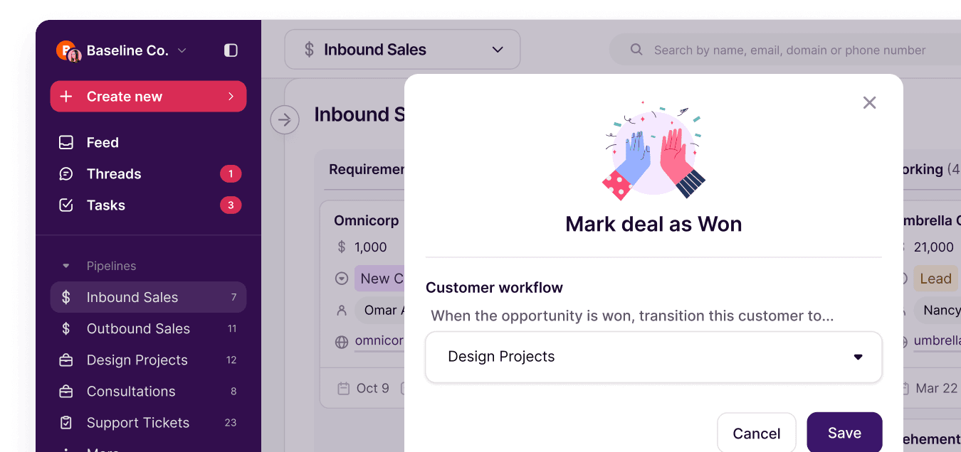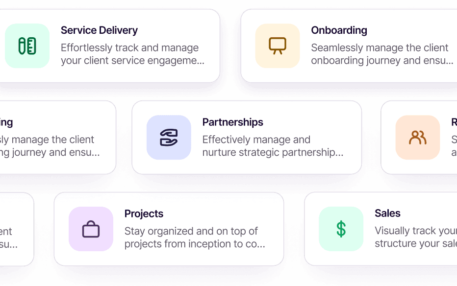 Move your closed deals into a project to handle service delivery, onboarding, partnerships and more.