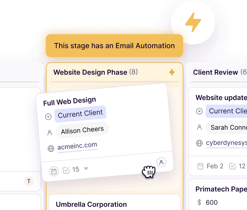 You can create unique project and task views, assign team tasks with due dates, and build out repeatable workflows and client onboarding sequences that reflect your internal best practices. It’s customizable project management CRM designed for real-world business use cases—not just generic task tracking.