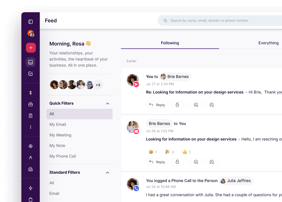 As a small business I love that Copper can keep my emails and tasks organized. The large CRM platforms were too much. As my day is all email, Copper is just what I need.