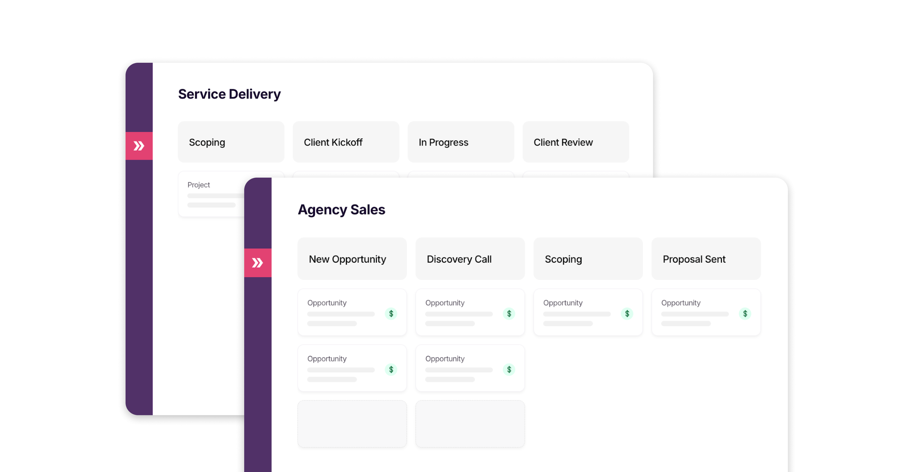 Your first automation kicks off right when the salesperson moves a deal to Closed-Won in the Agency Sales pipeline. You’ll be prompted to create a project in your “Service Delivery” pipeline.