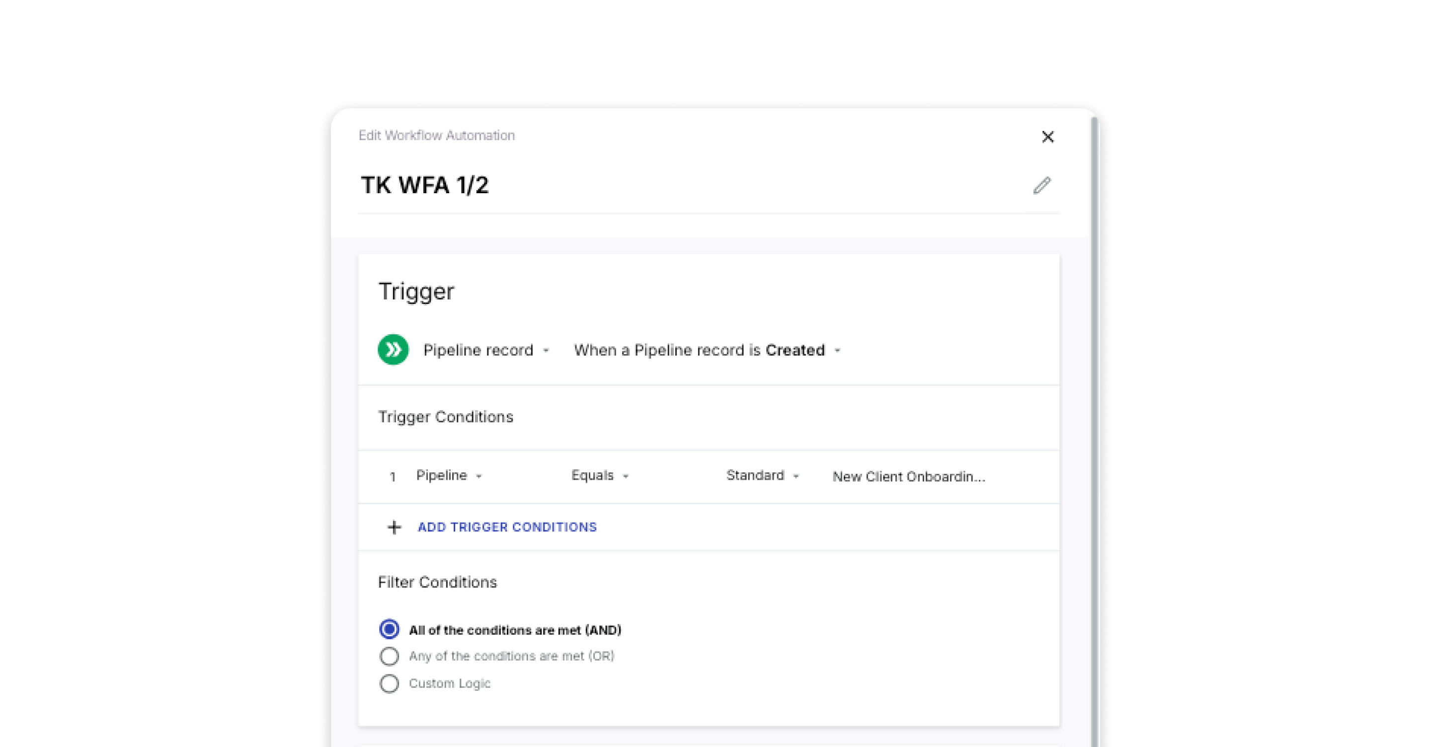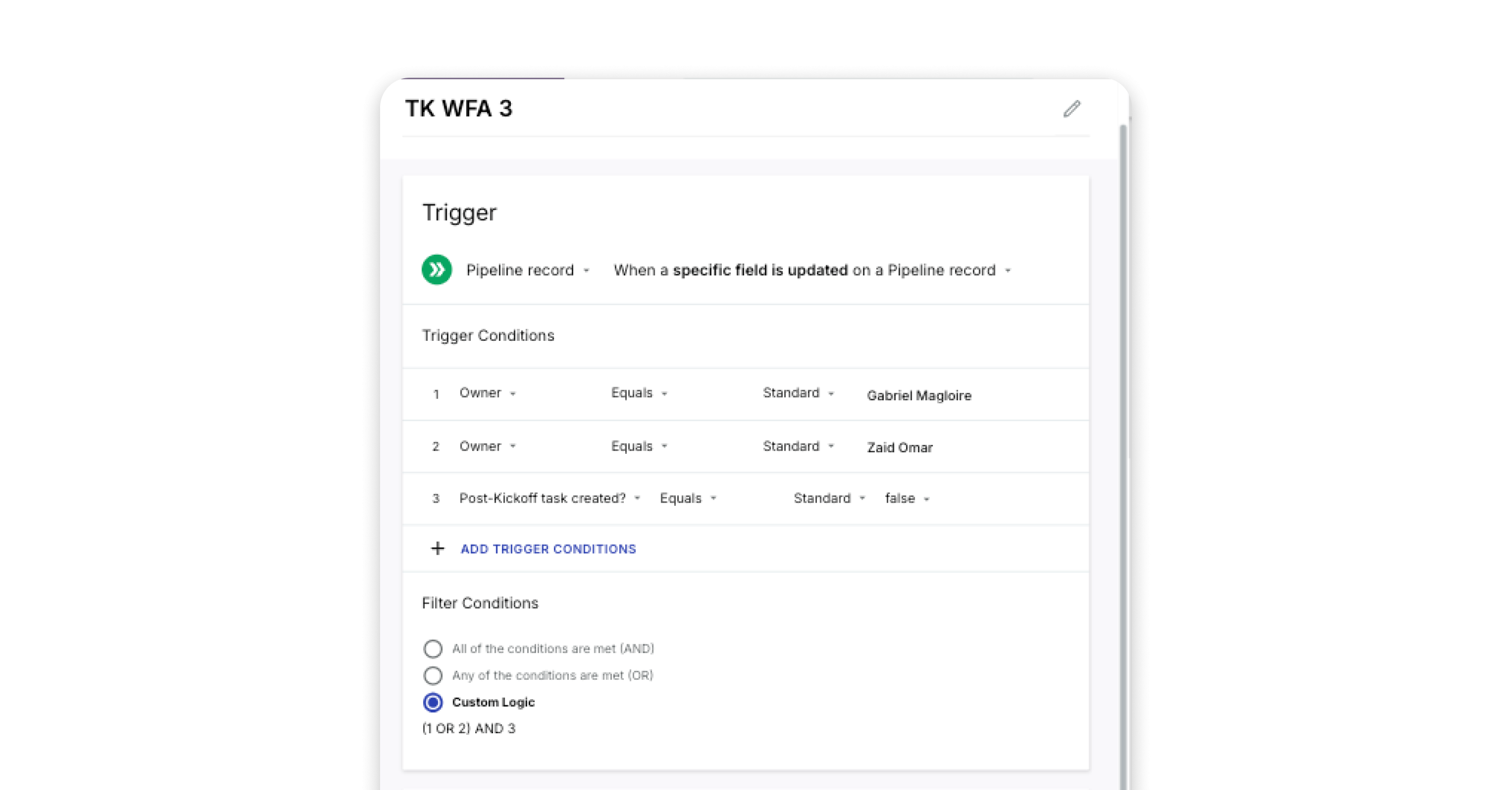 Trigger: Pipeline record → When a Pipeline record is created