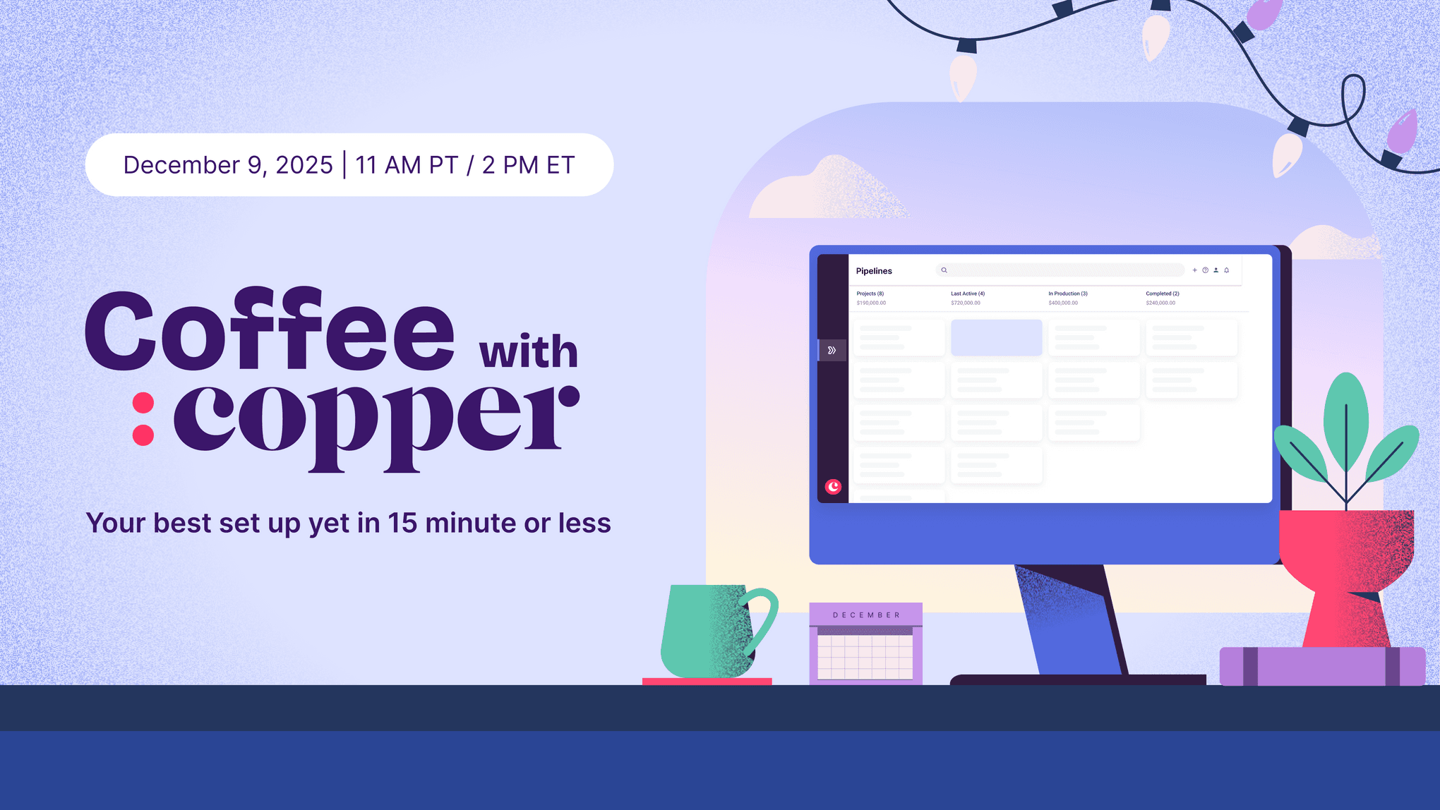 Each improvement takes just 15 minutes or less and helps you start 2026 with a cleaner, more organized, and more powerful Copper workspace. Follow along in your own account as we demo each workflow, share best practices, and answer your questions live. You’ll walk out with a better set up than ever before.